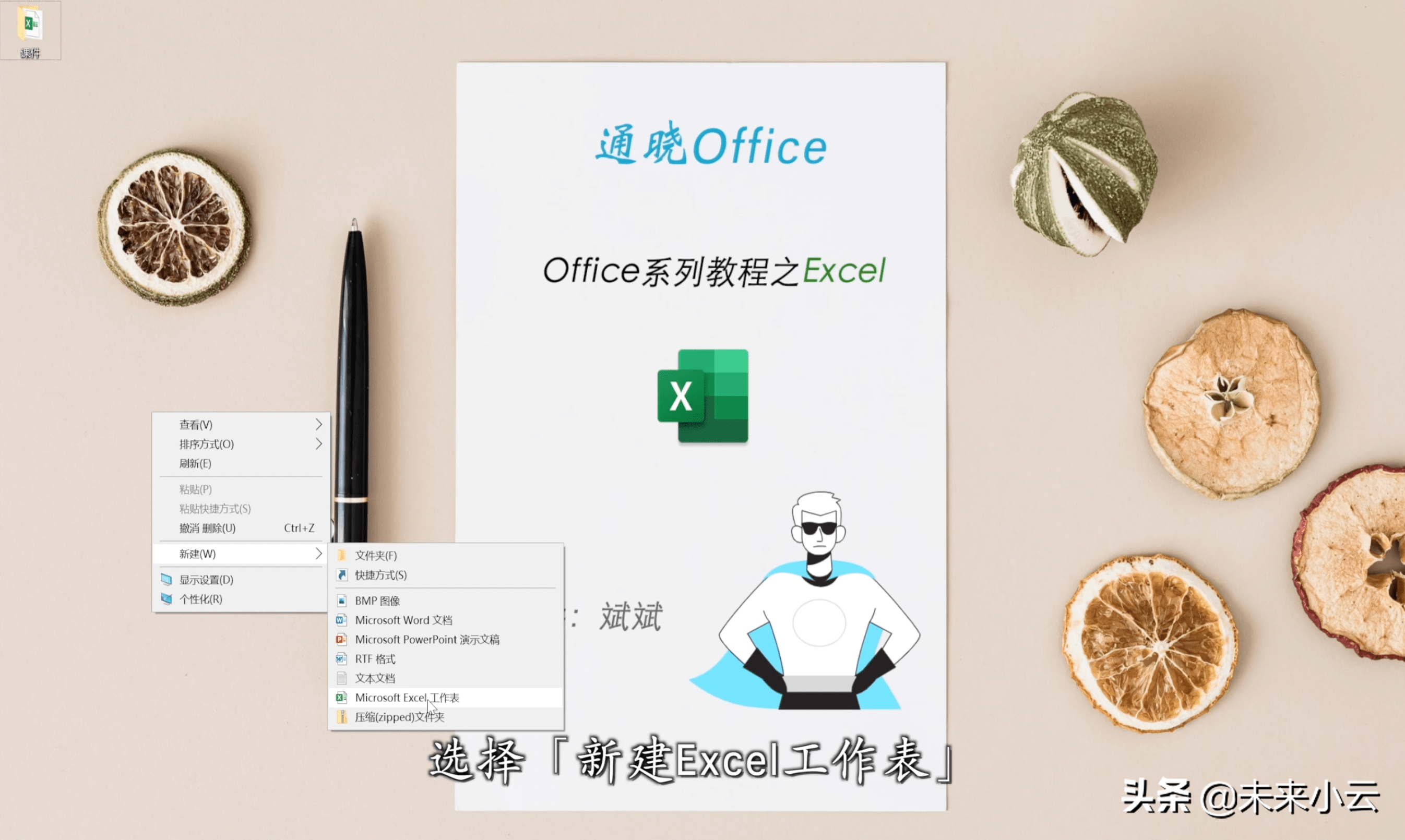 在电脑桌面(或者文件夹内)任意空白位置,单击鼠标右键 ,在右键菜单中选择「新建」-「Microsoft Excel工作表」。然后输入「采购明细表」,输入完成按下回车(也叫Enter键)。