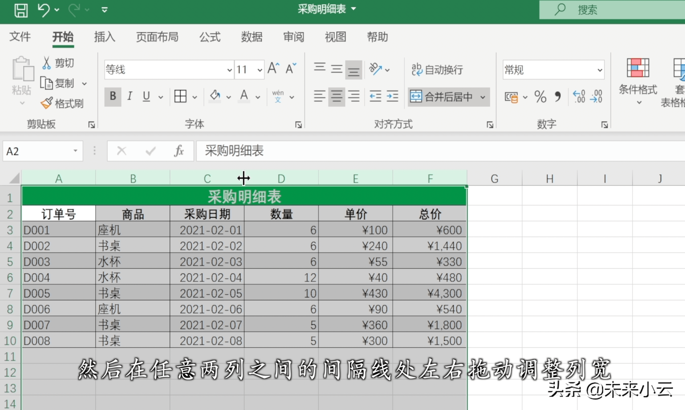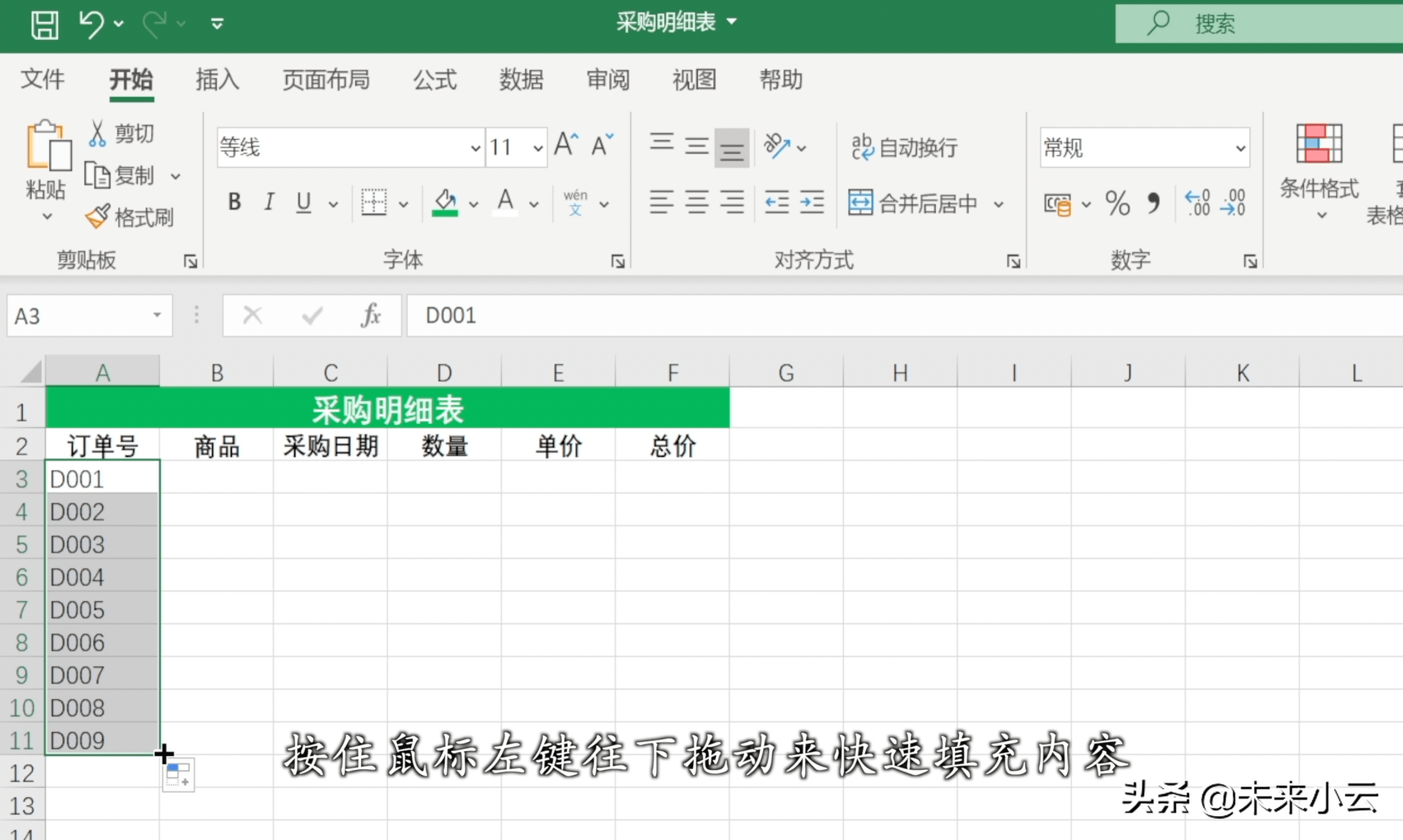 此时,对于其余总价的计算,我们可以通过前面学过的「填充柄」,快速填充其余总价单元格。