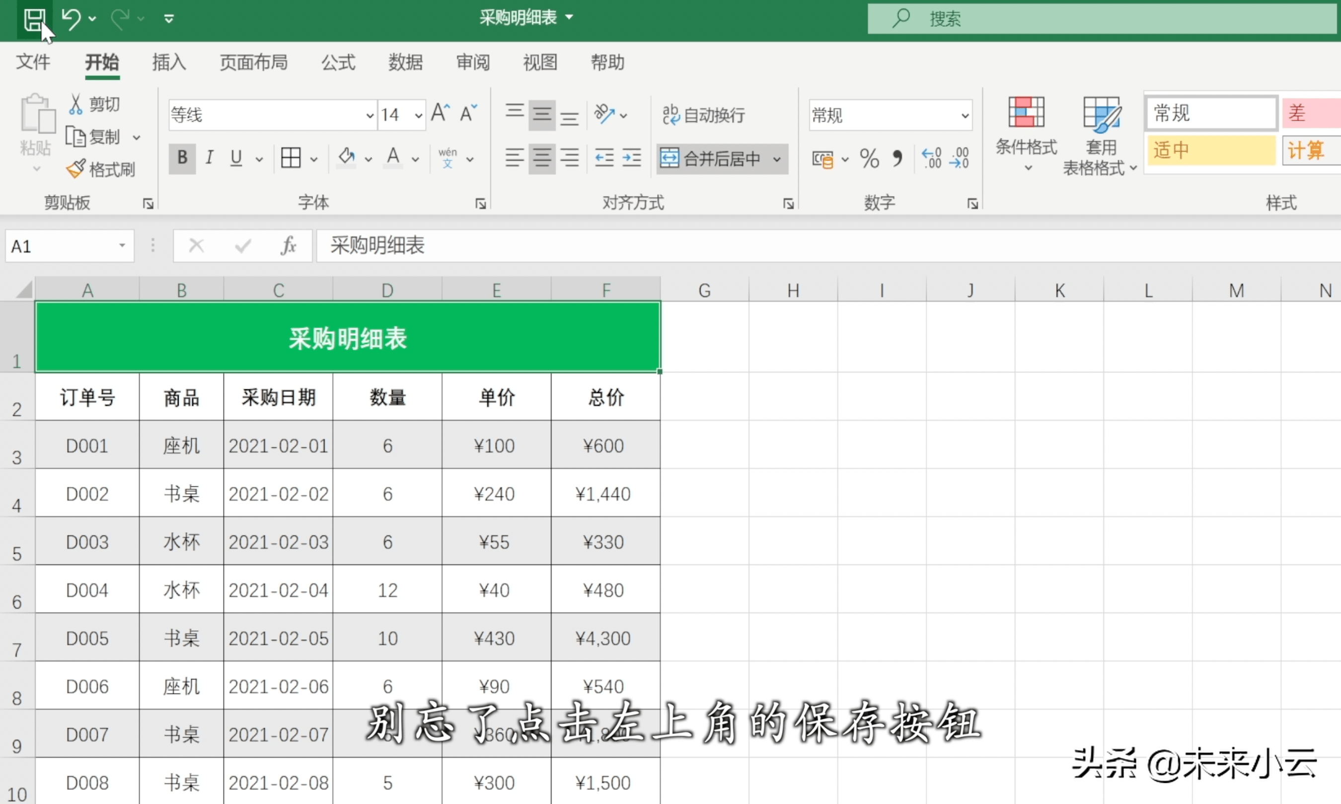 大家一定要养成良好的保存习惯,在制作大量数据的表格时,边做就要边保存,避免数据丢失!