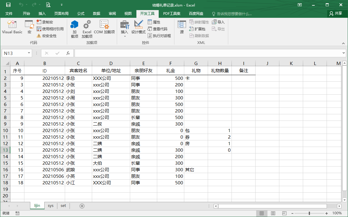 本篇内容为婚礼过程中对于礼金各礼物记录管理的一个解决方案。