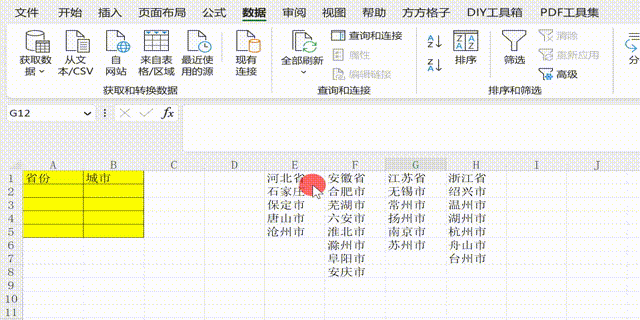 如下图需要将右边的省市按照左边的结果展现出来,结果如下