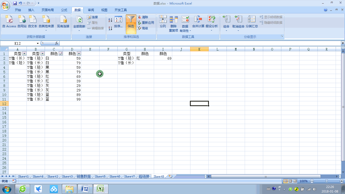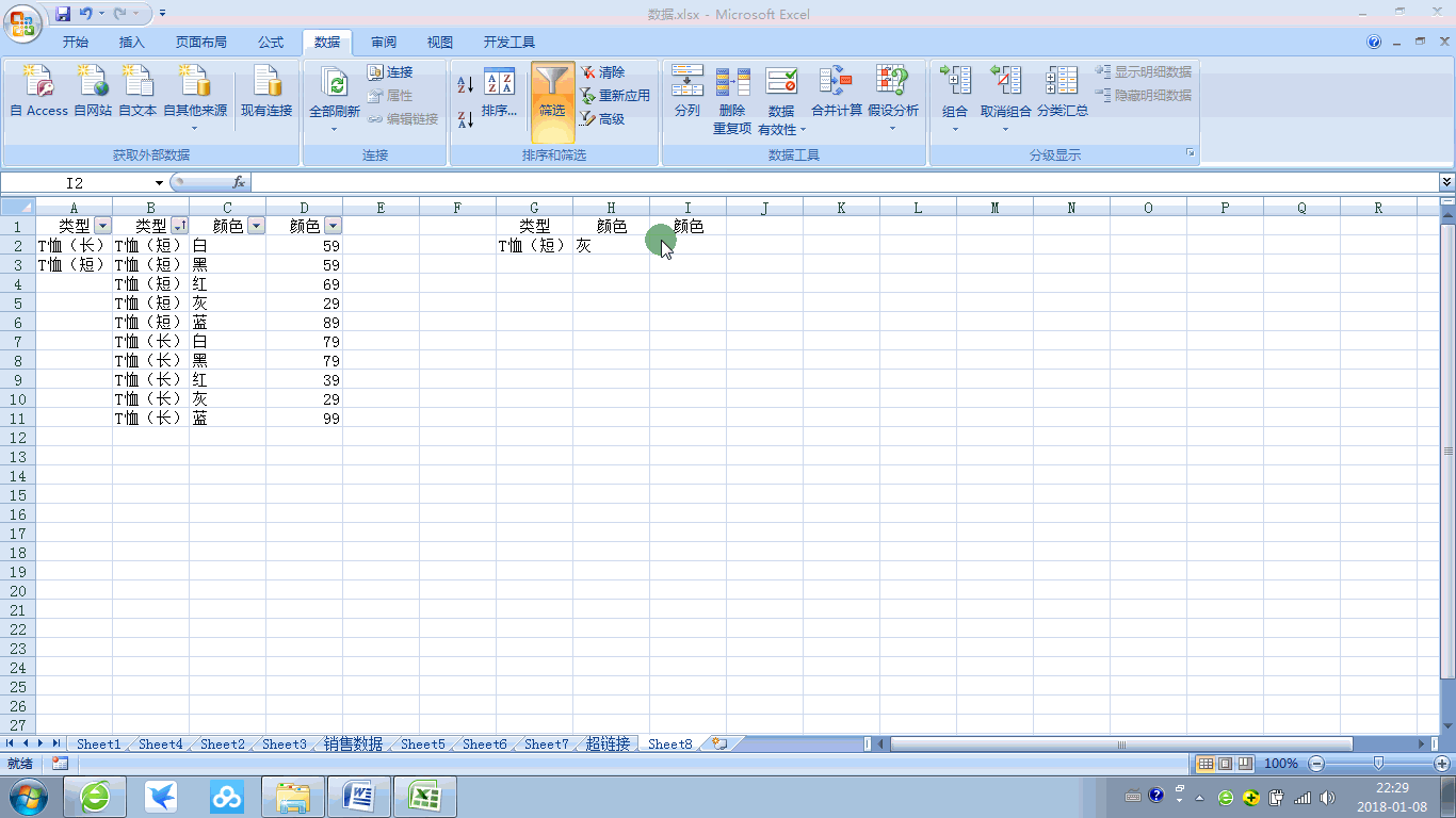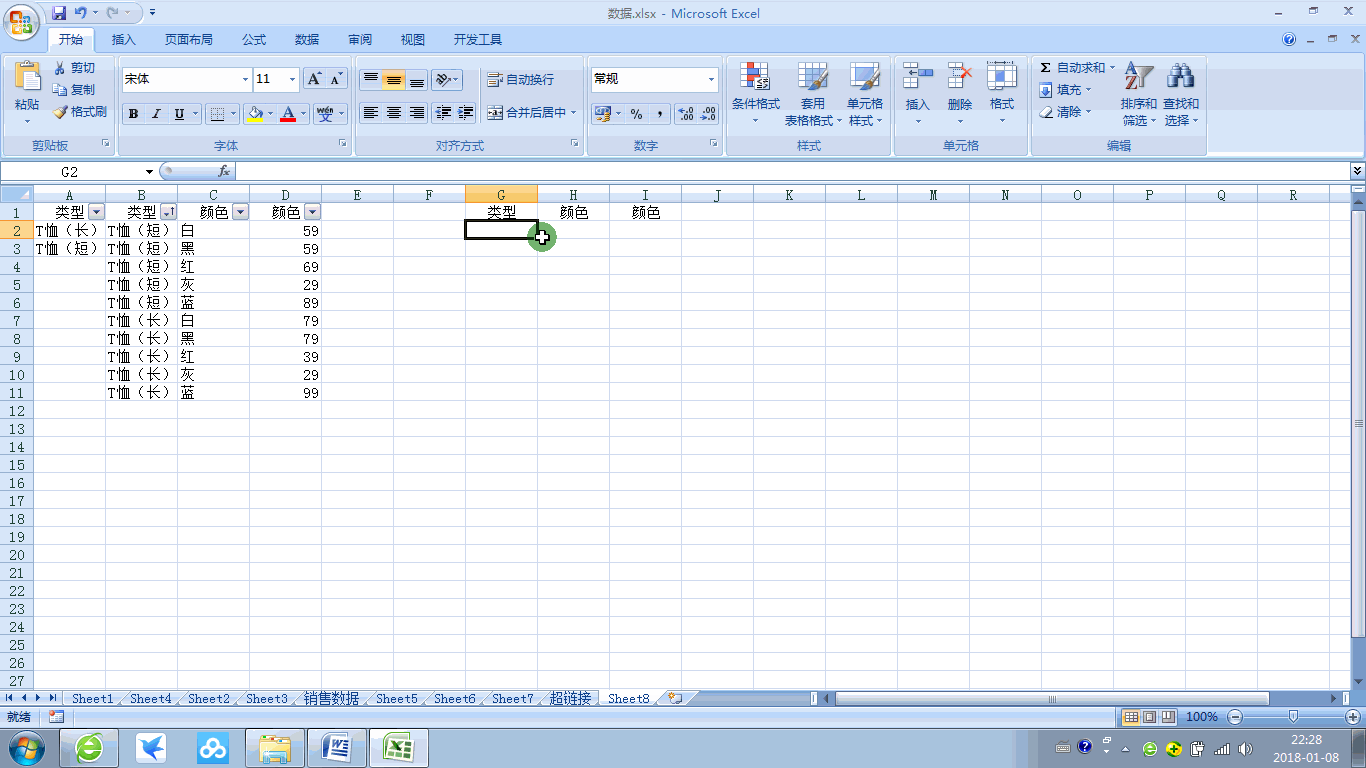 然后直接进入本次主体,所谓联动,就是当我第一个选择了广东省,第二个可以根据第一个选择筛选出与第一个下支的数据,第三个可以根据第二个筛选出相应的数据,以此类推。本次利用的例子是关于服饰,以类型联动出颜色,再得到相应的金额。