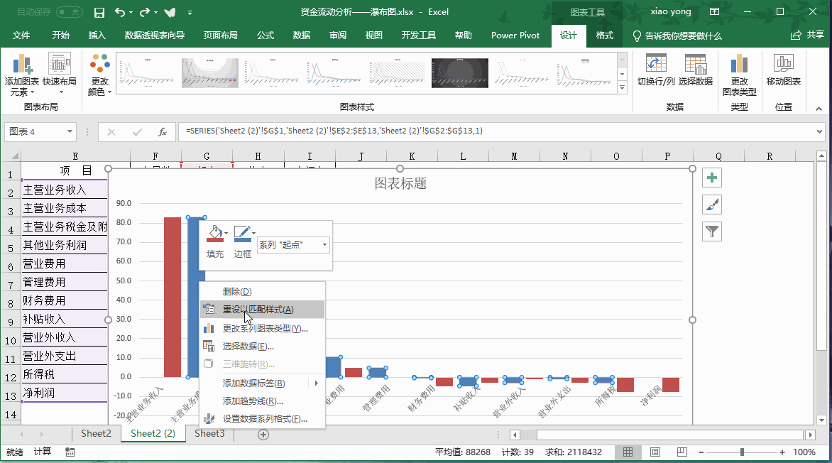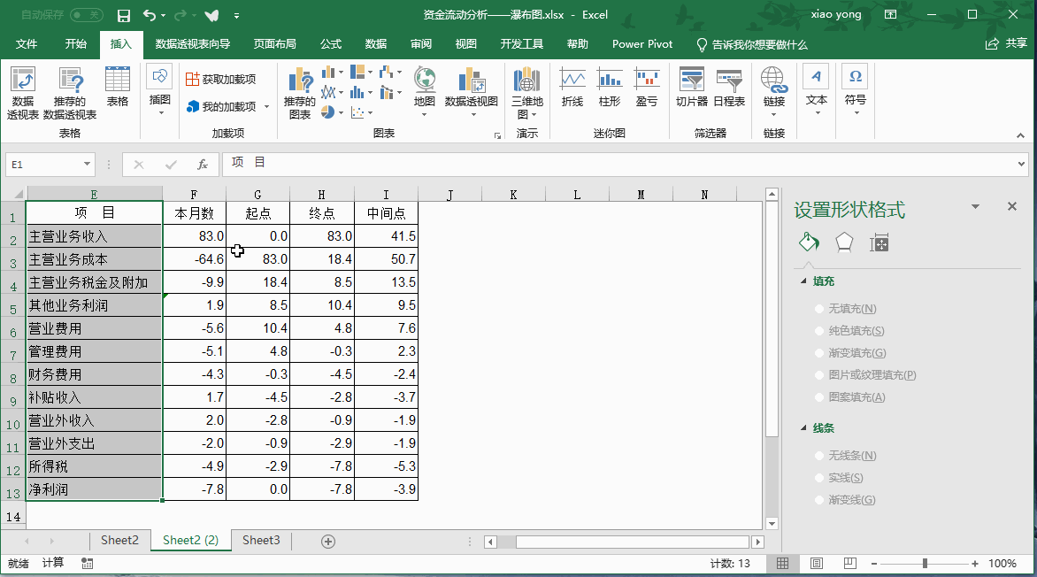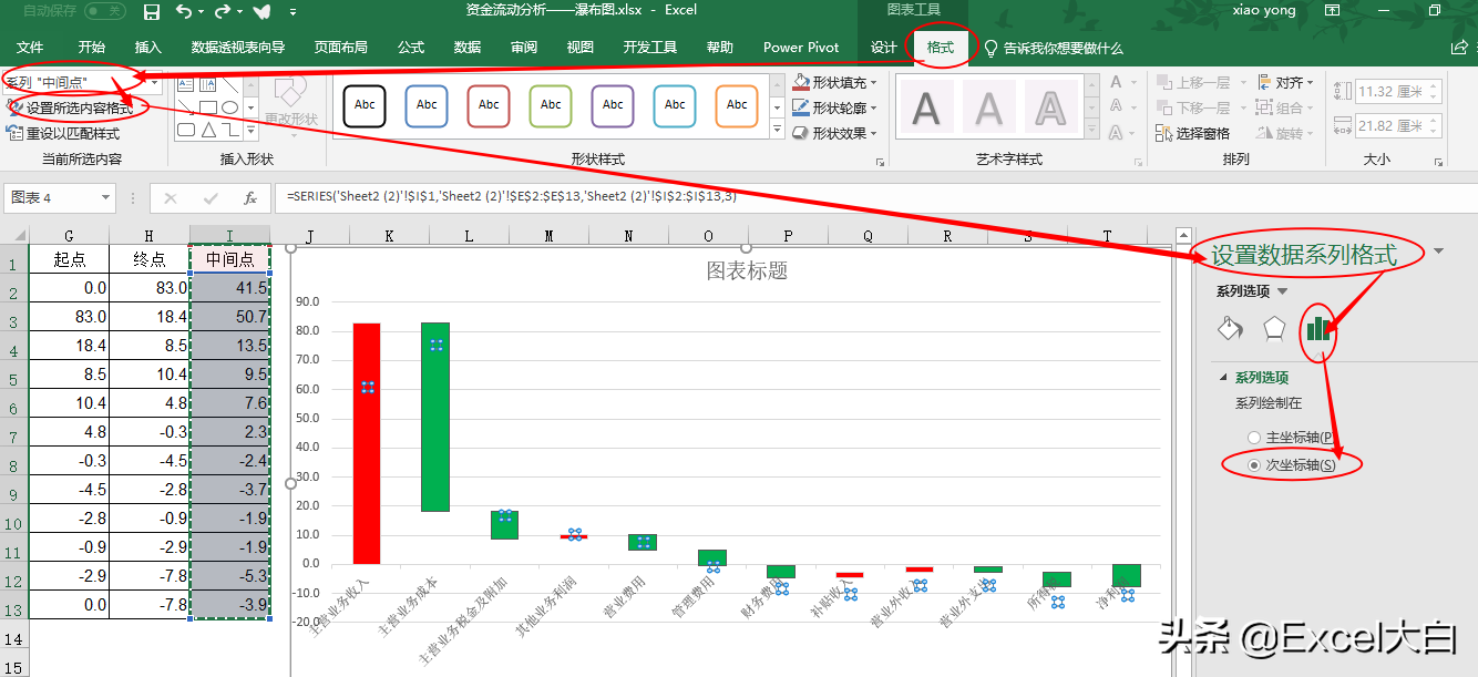 在这里,我们就需要用另外的一种图表来表达,那就是--瀑布图。