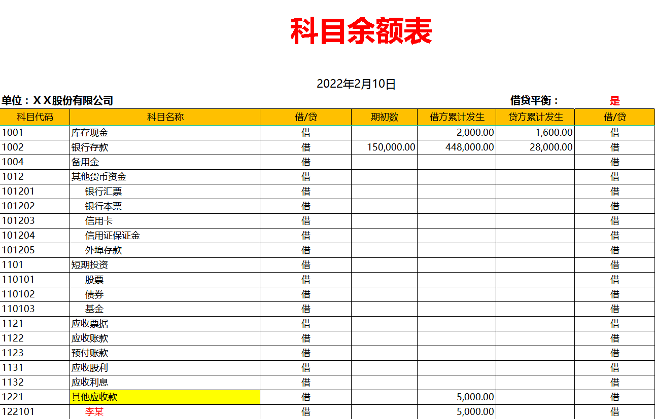 科目余额表