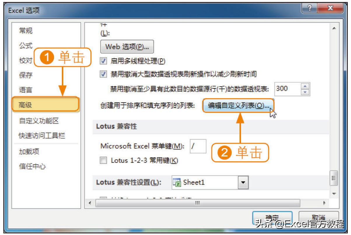 ②在右侧单击“编辑自定义列表”按钮,如下图所示。