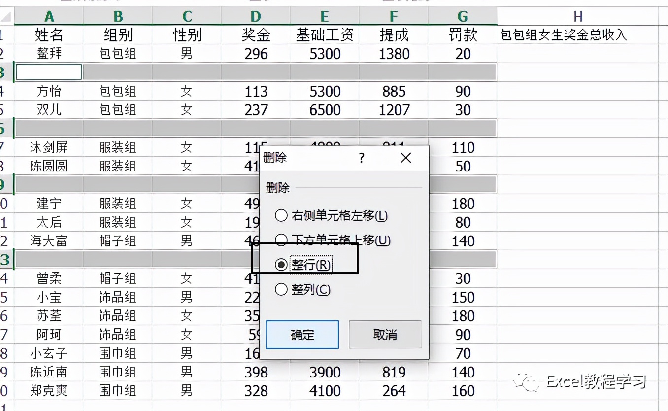 表格中发现了一些完全没有数据的空行,它占用空间影响排版,我们通过定位条件来批量删除。