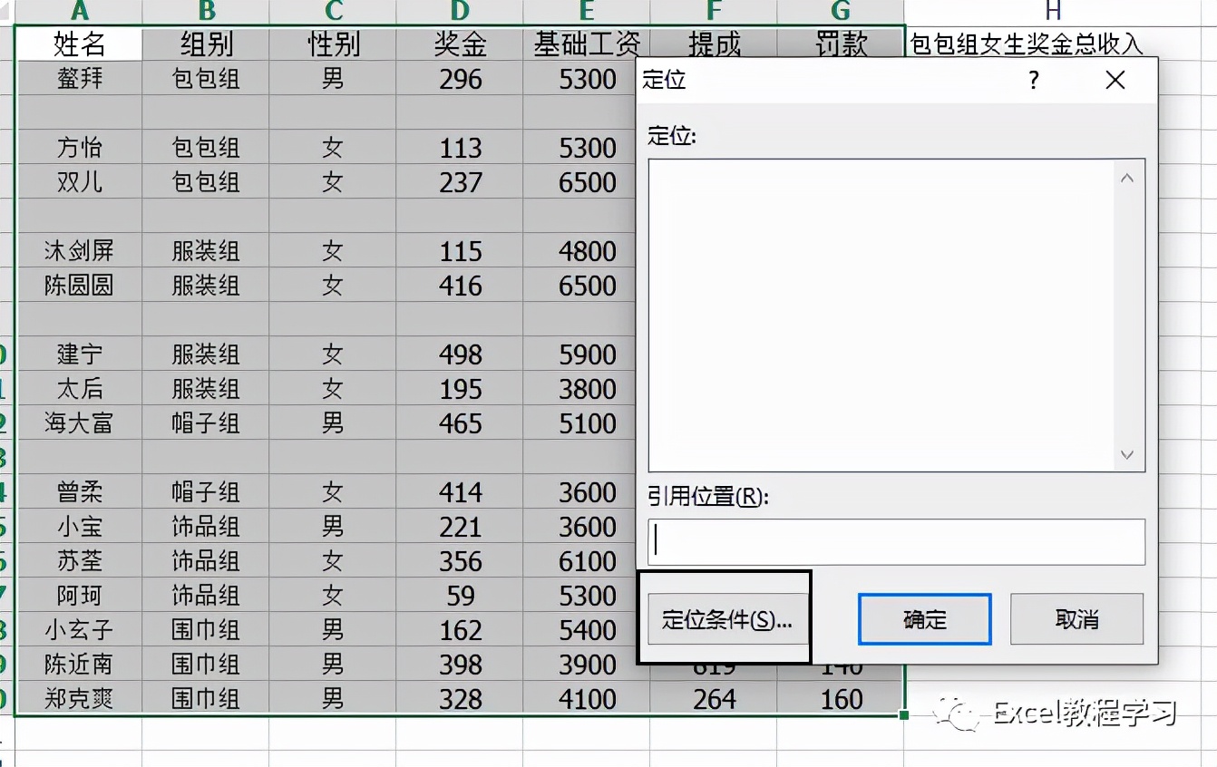 首先拉取所有数据,或拉取一列,然后利用CTRL+G快捷键呼出定位条件框,也可以直接按F5弹出定位条件框。