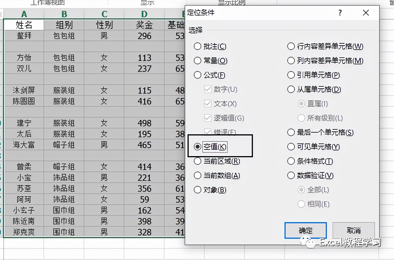 选择条件“空值”,点击确定,系统便即时选取了所拉取数据中的空值。