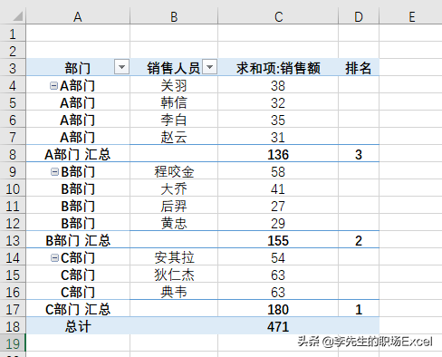 以上就是给大家分享的关于部门汇总数据排名的操作方法,不知道你学会了吗?