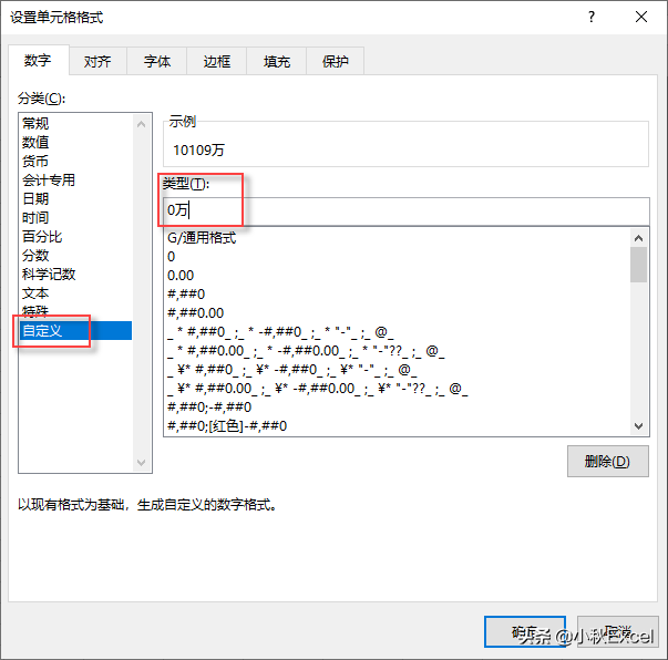 (3)在"设置单元格格式"对话框的"分类"选项组中选择"自定义"选项,在"类型"文本框中输入"0万",如图3所示。