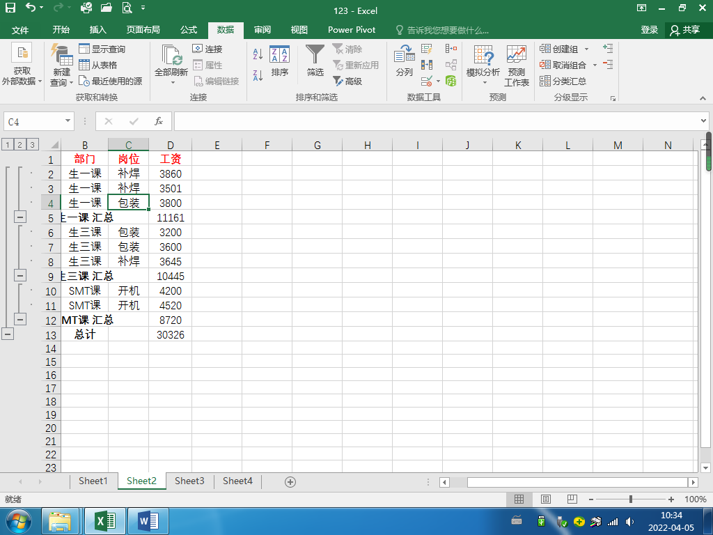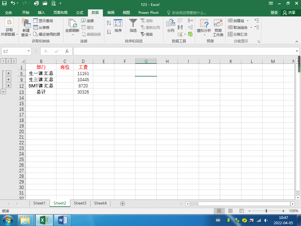 2.表中左边123表示是分级显示。单击1只显示总计,单击2只显示汇总;单击3显示全部。