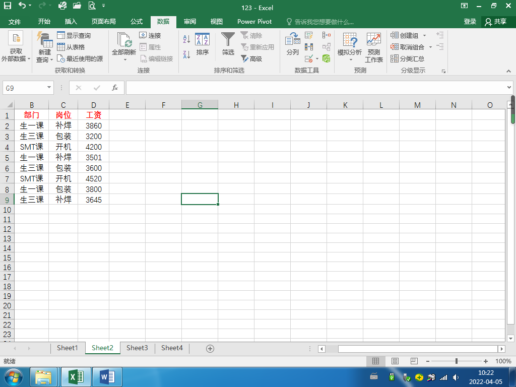 1.单击部门中的某个单元格,单击排序工具(降序或升序)。