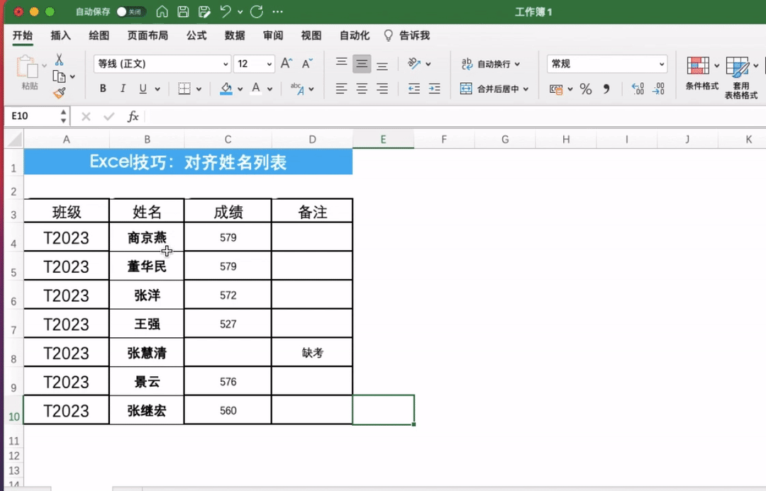 选择“姓名”单元格区域;然后按下Ctrl+1调出格式窗口