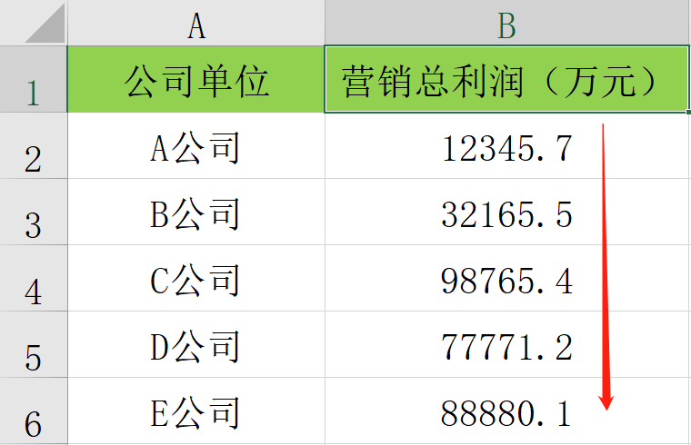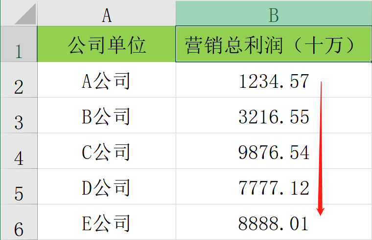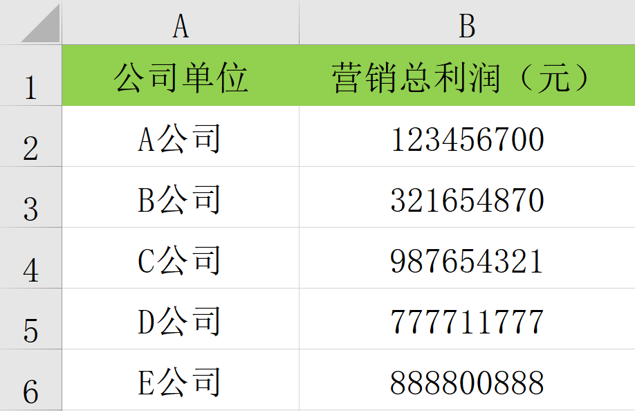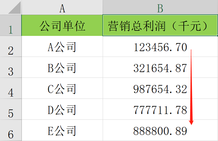 メ大家请看范例图片,我们可以看到营销利润总额数字较大,我们用数字格式来进行换算单位显示。メ