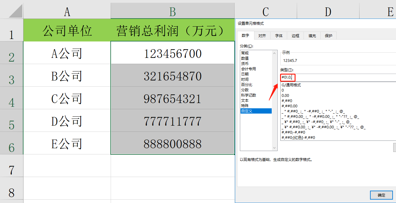 メ其次,我们以万为单位显示这些数据。同样的,选中数据后按住Ctrl+1设置自定义为【#0!.0,】点击确定。メ
