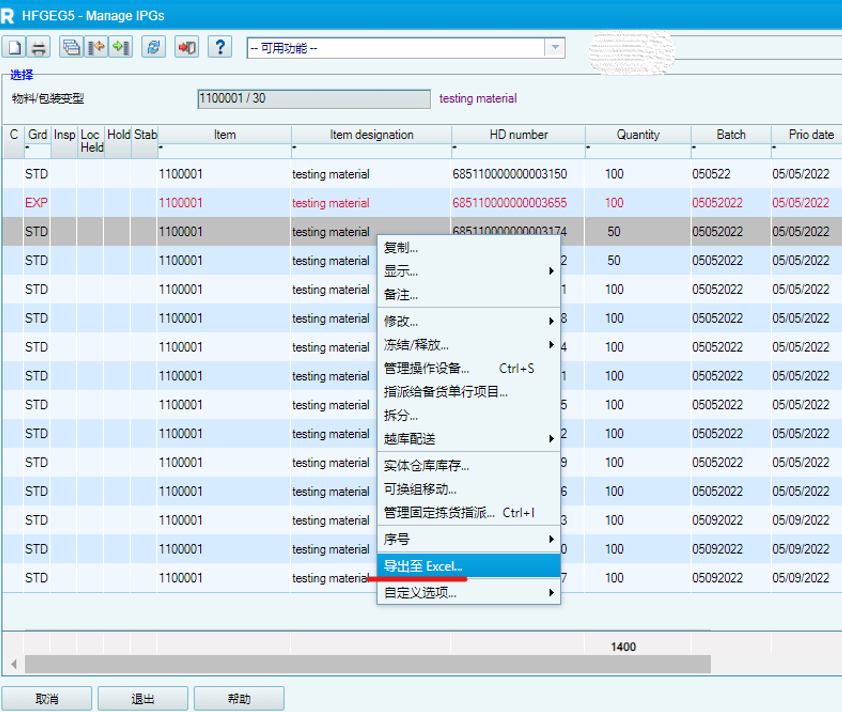 1, 在Manage IPGs界面,选中某行数据点击鼠标右键,导出到Excel。