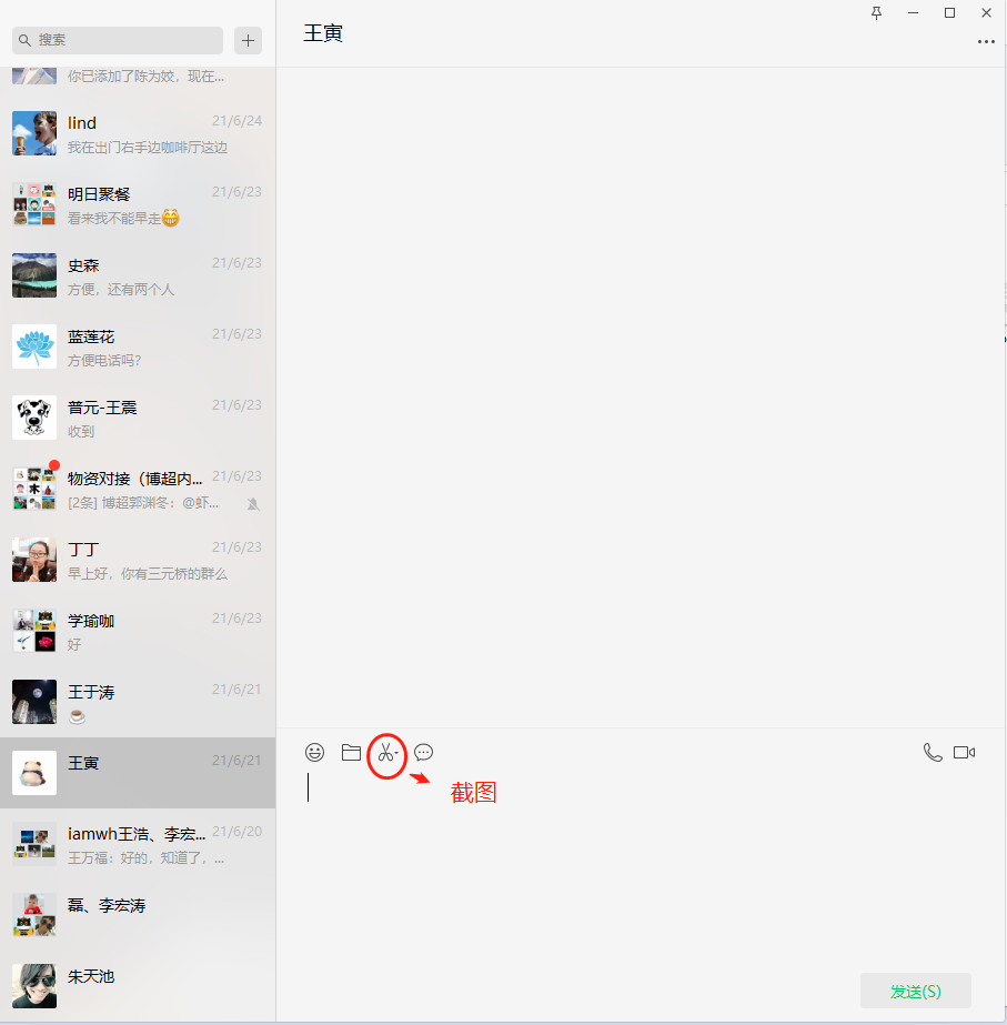 找任意好友打开聊天窗口,点“剪刀”,或强烈建议用“Ctrl+A”快捷键,更方便快捷。
