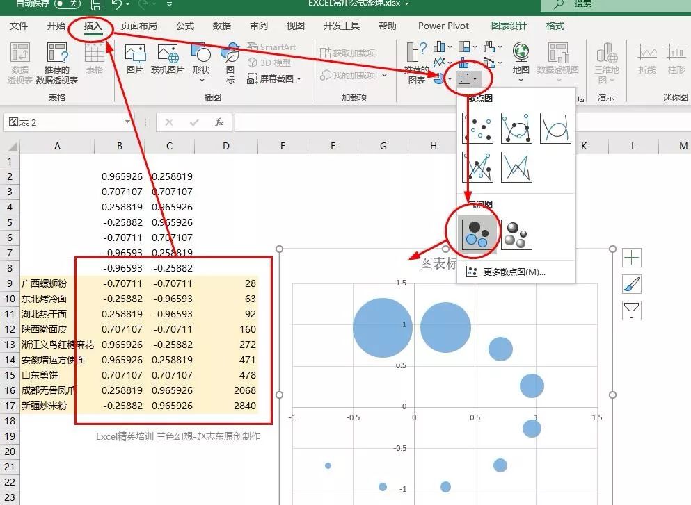 选取黄色区域(不要选A列)-插入气泡图