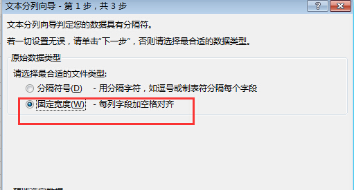 1. 如果没有一个统一的分隔符合,也可以通过宽度进行分列。还可以在4中选择“固定宽度”进行分列。选择“固定列宽”,点击下一步。
