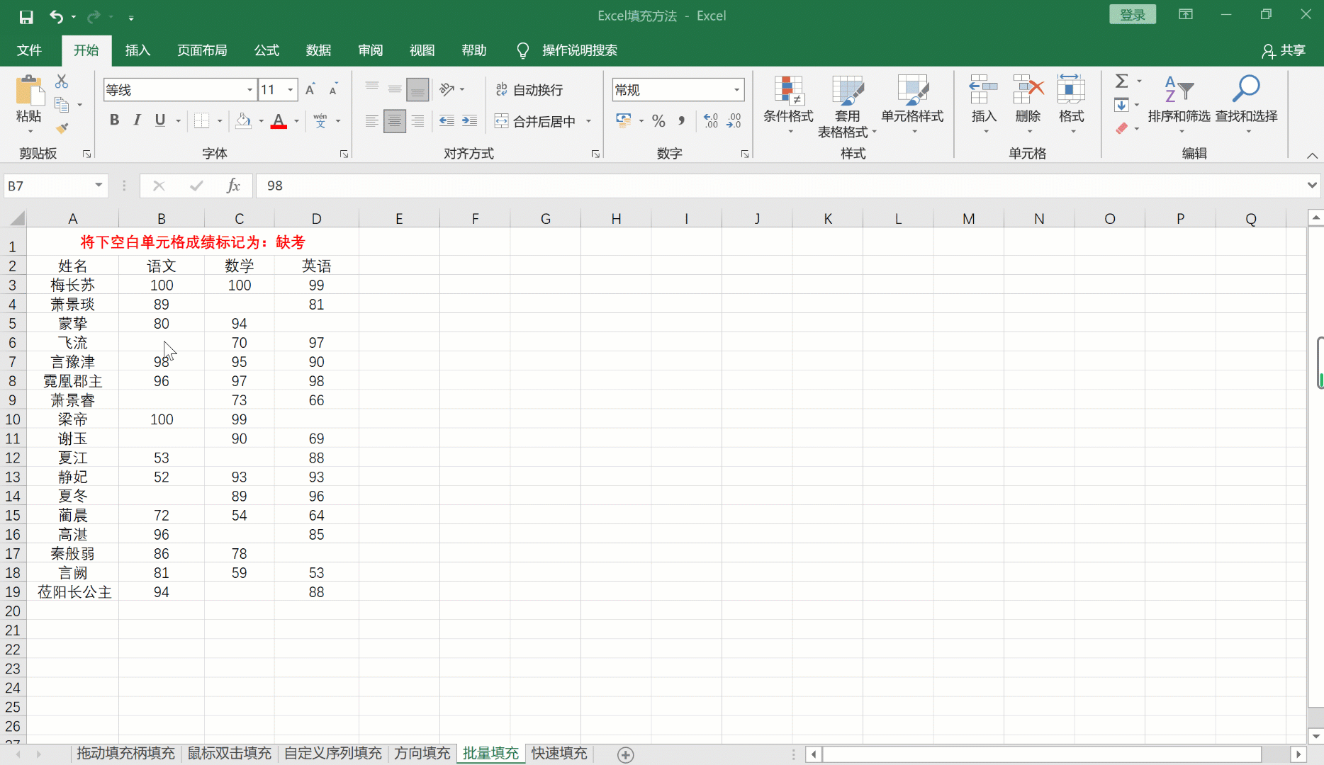 5、批量填充: