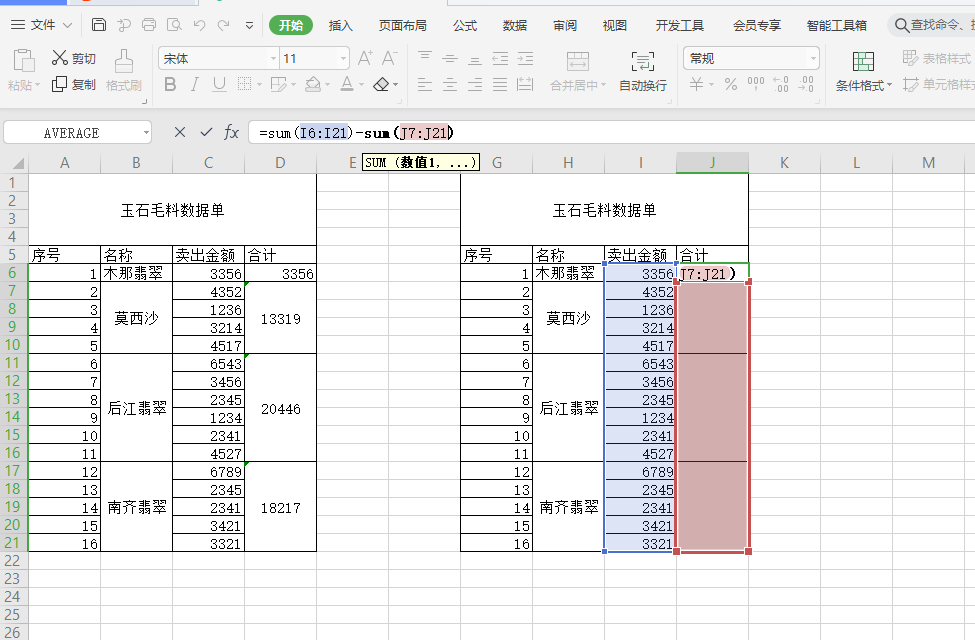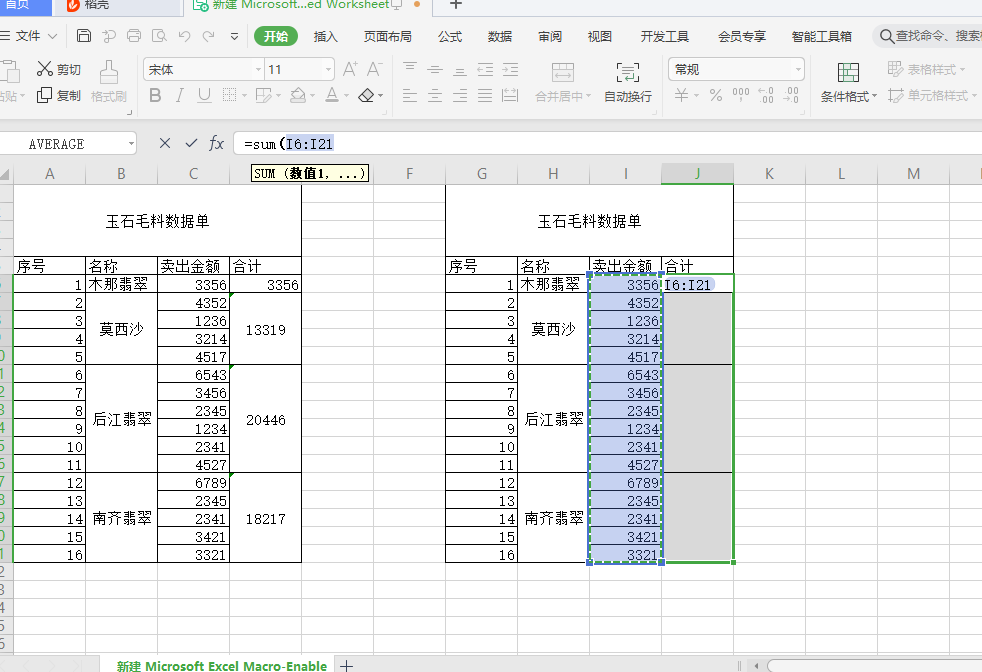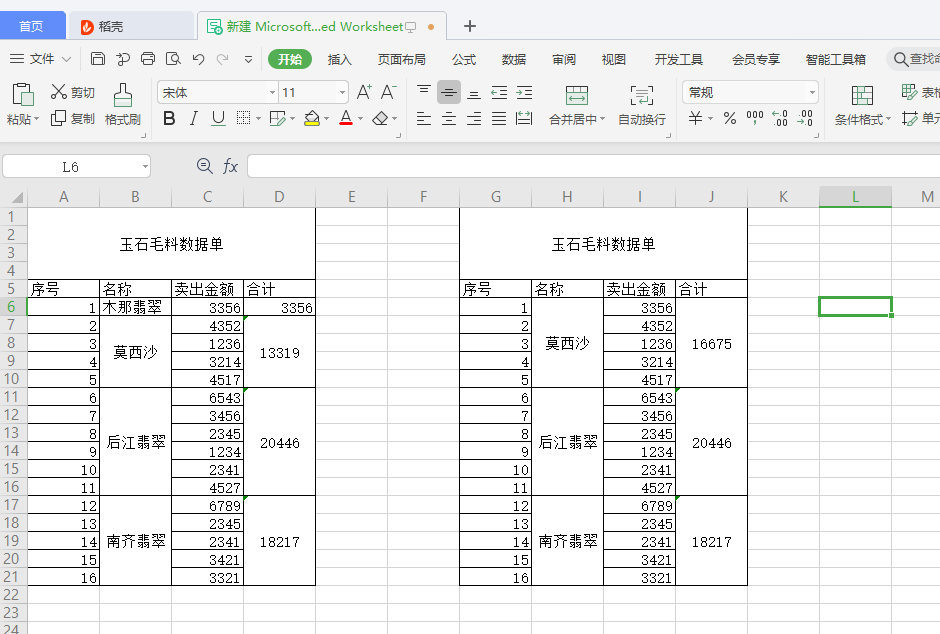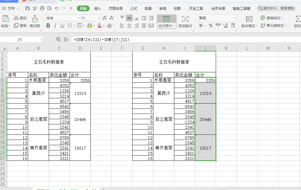 我算出最后的结果,还要学会举一反三,我们看下面这个表格,这个表格我做了修改,求和模式就不是那么复杂了,但是方法还是一样的,使用方法完全一样。