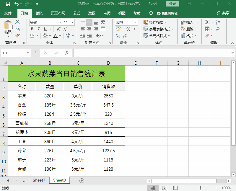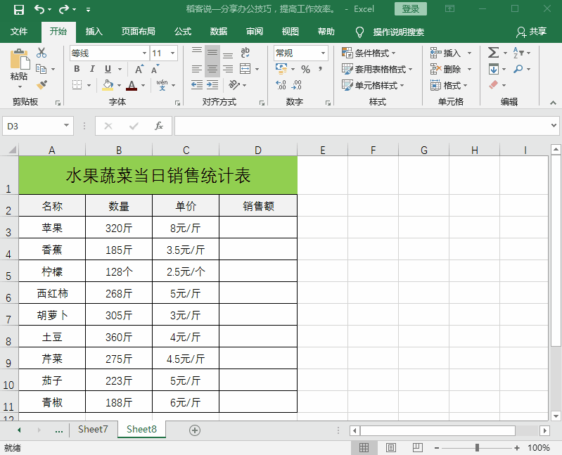 在市场卖菜的隔壁张大妈找到我,叫我帮她做一个果蔬当日销售统计表,以便每月做个数据统计、分析。