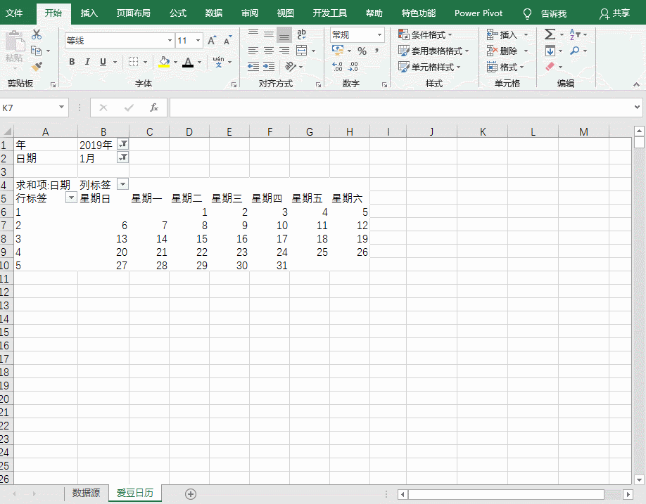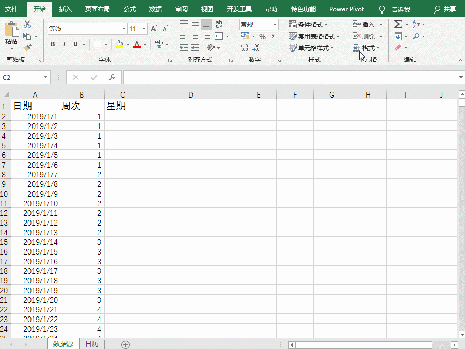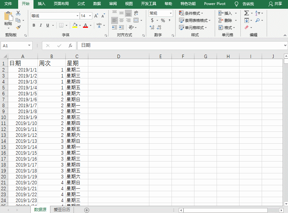 这样一个万年历的数据源就制作好了,接下来我要把往后余生的每一天都装进数据透视表里。
