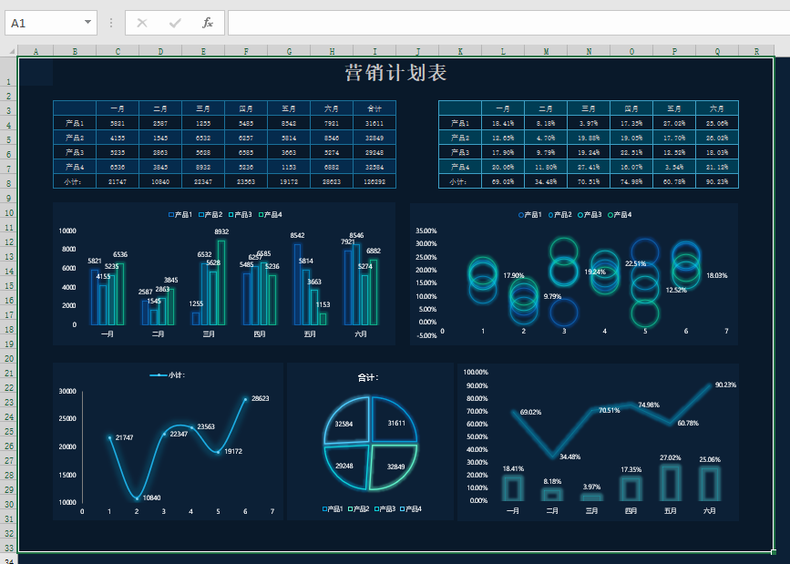 メ多类型图表文件,数据看板,科技感十足。メ