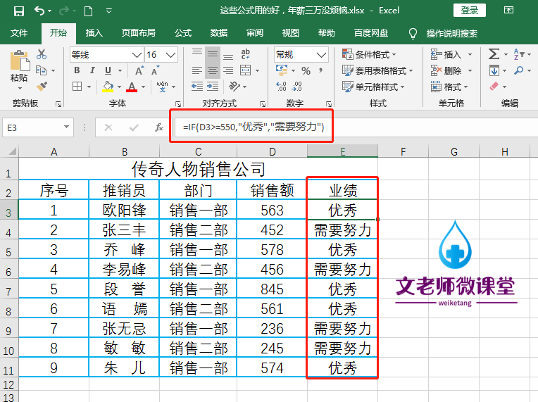 案例:某公司根据员工销售额考核评价员工,如果销售额大于等于350元就是“优秀”小于350元就是“待考核”。