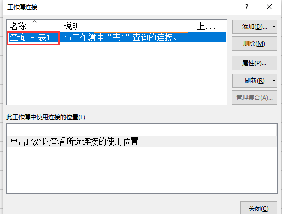 ThisWorkbook.Connections("查询-表名").Refresh ThisWorkbook.Connections("查询-表名").Delete