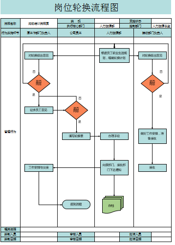 メ大家请看范例图片,人员调岗,轮换流程图,Excel完整框架设计。メ