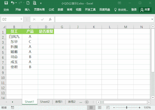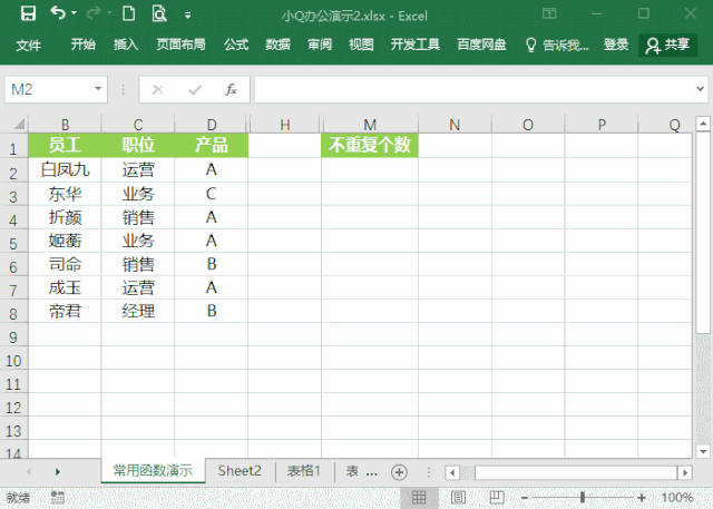 在表格中有很多产品是重复的,怎么样快速统计不重复的个数。