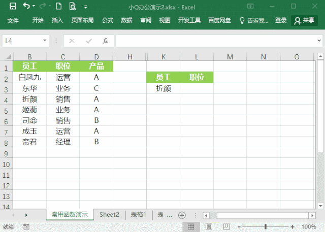 根据姓名查找对应的职务,通常都用vlookup函数查找。