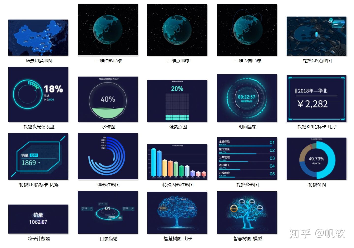 FR大屏还内置了19种图表类型和50多种图表样式,能满足不同报表开发人群的多种需求,同时图表具有丰富的交互功能,完全能满足你想要的酷炫展示形式。