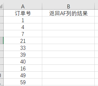在企业中这种很多列的数据很常用,然后我们现在需要进行VLOOKUP查找匹配,比如现在要根据订单号,查找出其中某列的数据,如我们要把这些订单号的对应AF列的结果查找出来
