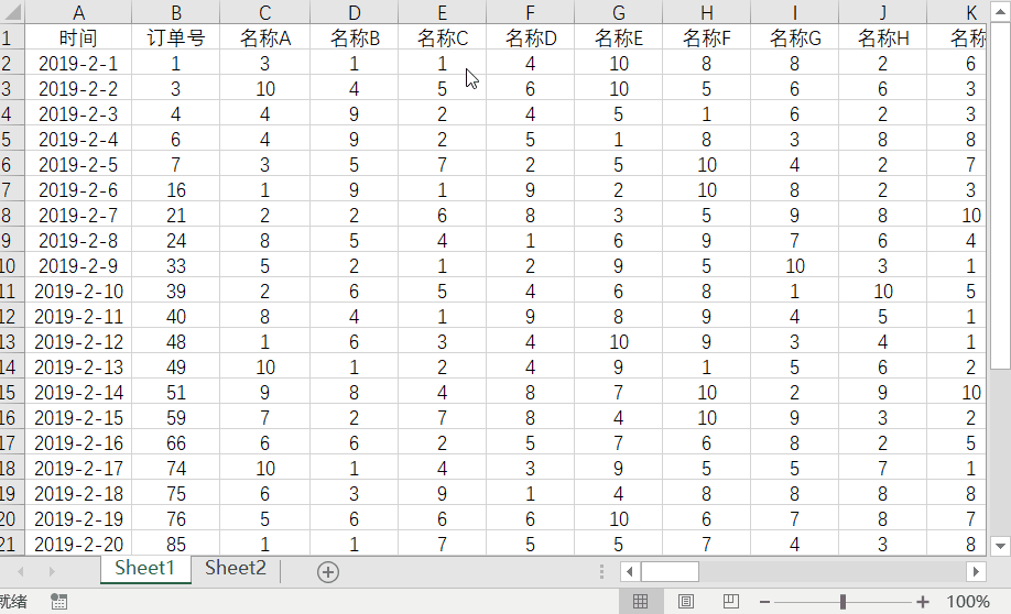 原始数据源里面的数据非常多的列,比如下面这个最大列标是BC列