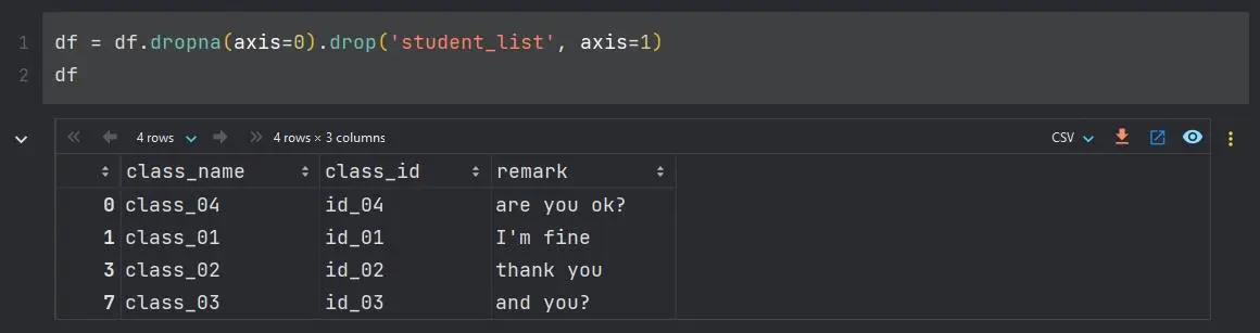 此步需要对原数据进行中带有空值的行去掉,并将student_list列丢弃。