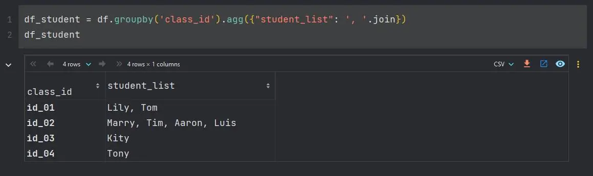 df_student = df.groupby('class_id').agg({"student_list": ', '.join})