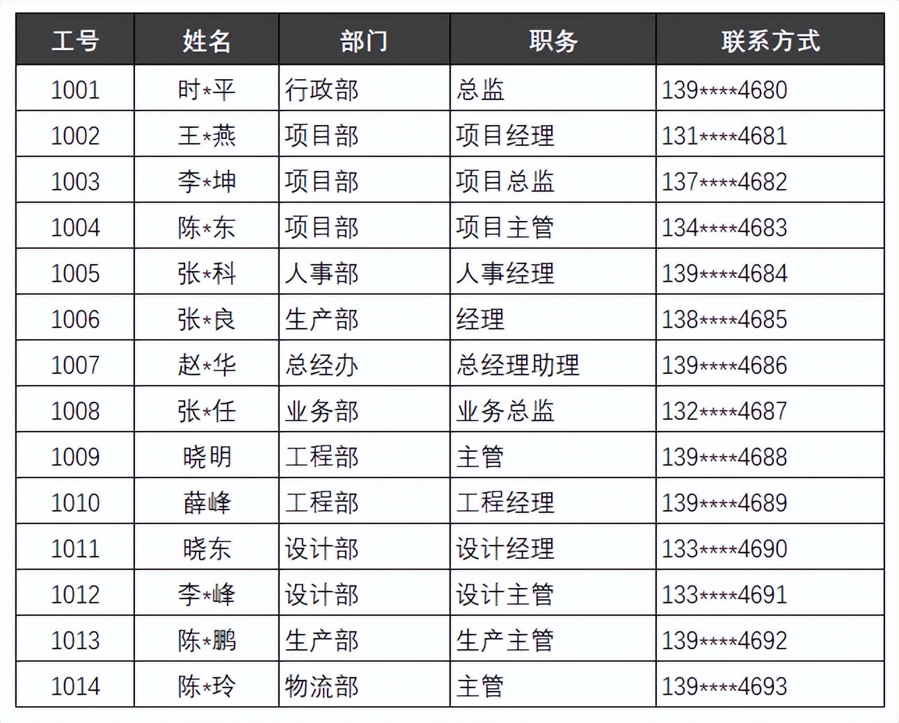 1、准备工作:首先准备好一张员工资料的表格,后续查询为了避免有同名同姓,可以通过唯一性的“工号”来检索。