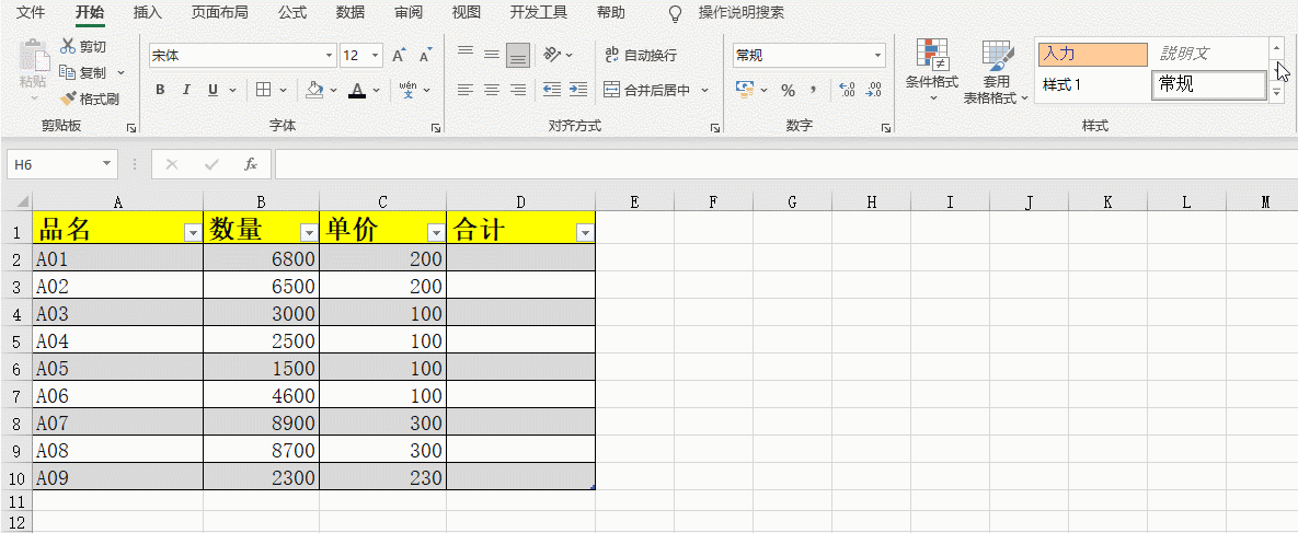 我们在D2设置好公式=[@数量]*[@单价],回车后你会发现,公式全部自动填充好了,这也是超级表比较好用的一个地方。