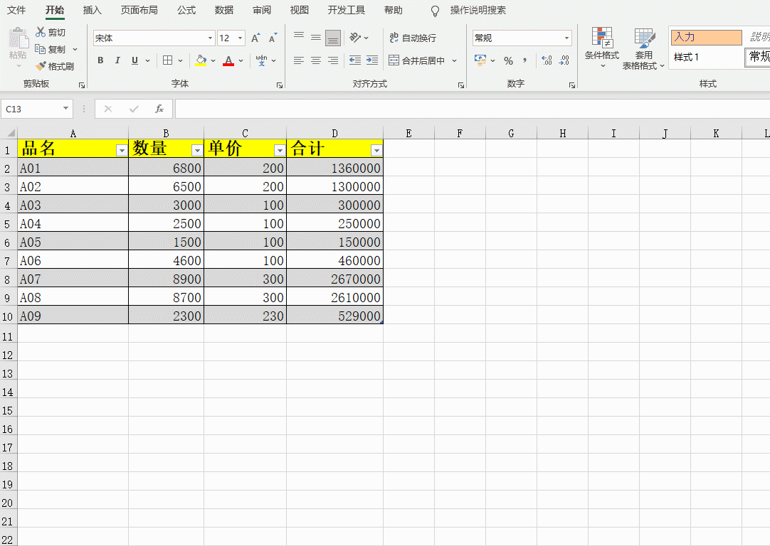 看上面动图,我们用一个普通表合计,增加数据后,SUM合计如果想将新增的数据合计进去,就得手工改动公式,否则合计就不准确,相信很多小伙伴们在实际工作中会经常遇到,但如果这个表是超级表就不用这么麻烦了,具体看下面动图。