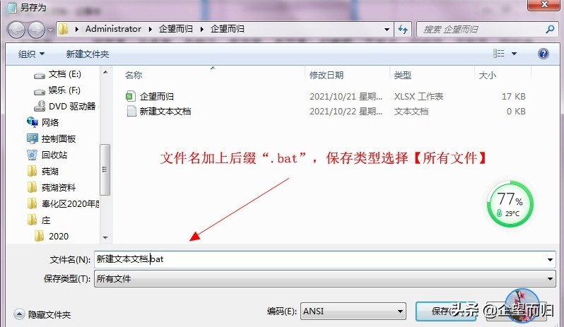 文件名加上后缀“.bat”,保存类型选择【所有文件】