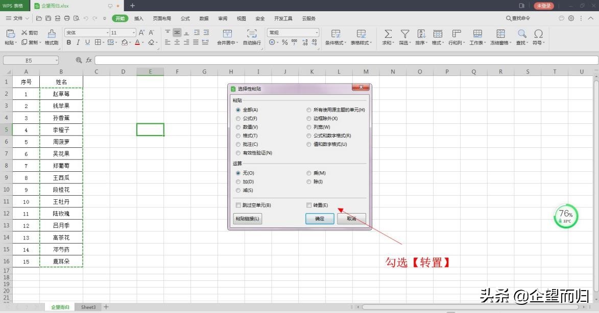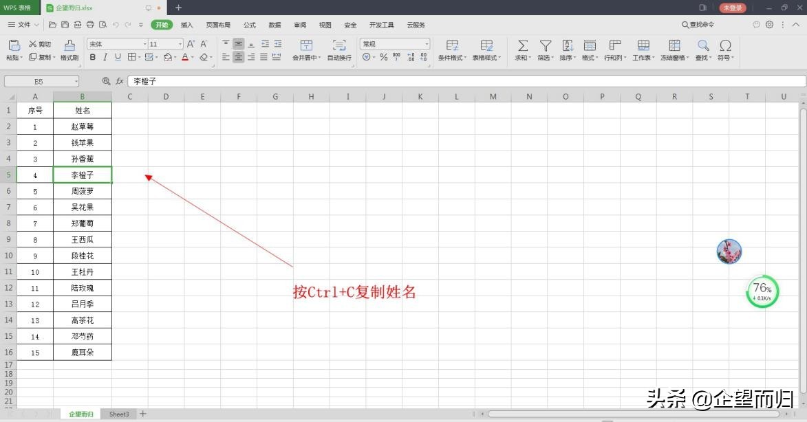 打开表格,选择B2:B16,按Ctrl+C复制姓名
