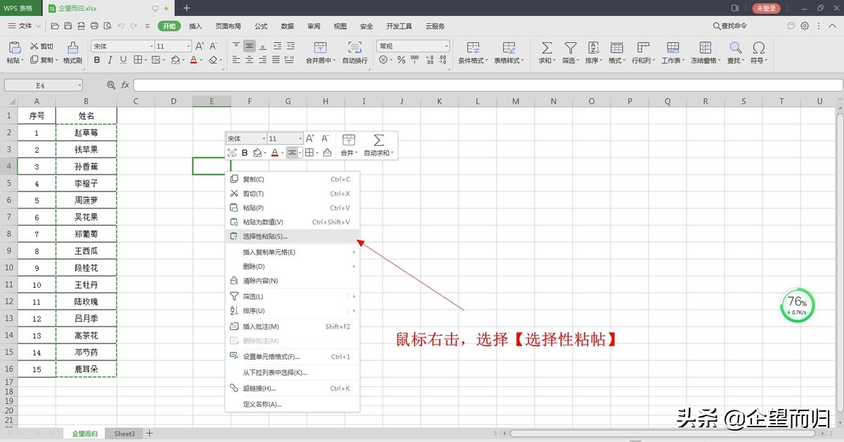 选择旁边的空白单元格,鼠标右击,选择【选择性粘贴】