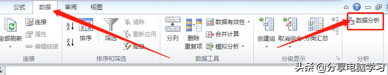 点击【数据】选项卡,可以在【分析】栏中看到【数据分析】选项卡。