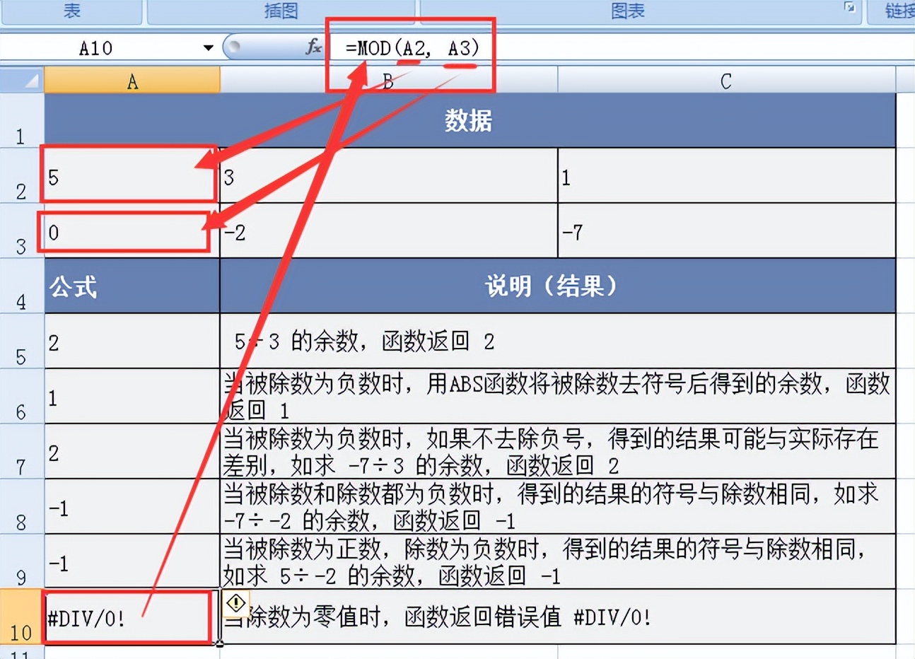 1、如果参数divisor为零,函数将返回错误值 #DIV/0!。