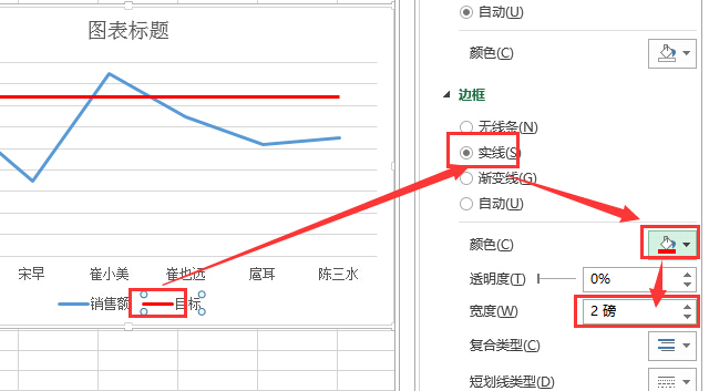 6.设置线条样式。将两个线条,做相同的参数设定,如下图。