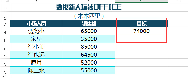 我拟制了表格,计划在图表中添加一条目标线(下图红线)和一条平均值,下面我给我大家演示“误差线”和“辅助列”两种方法。第一种方法相对复杂,但是功能强大;第二种方法非常简单,数据更新便捷。(so,如果嫌麻烦,直接看第二种)
