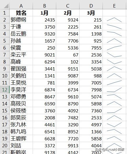 今天教大家一个让表格瞬间高大上的小技巧:给数据表加上迷你图。