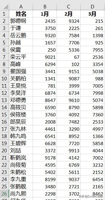 下图 1 就是张普普通通的原始数据表,罗列了每个人 1 到 3 月的工资。